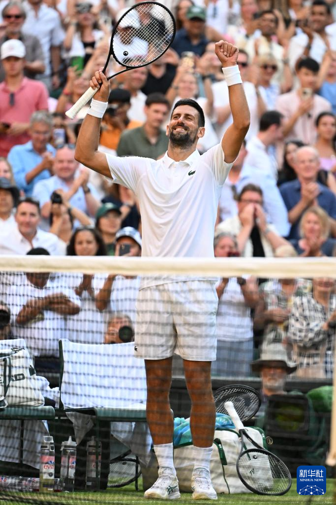 7月9日,焦科维奇在比赛后庆祝。新华社记者 赵丁喆 摄