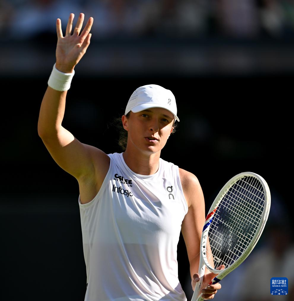 7月10日,斯维亚特克在比赛后庆祝。新华社记者 李颖 摄