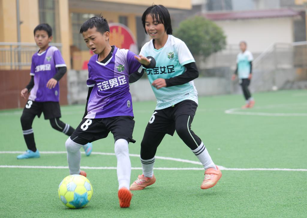 元宝小学的学生们在进行足球比赛。新华社发(罗大富 摄)