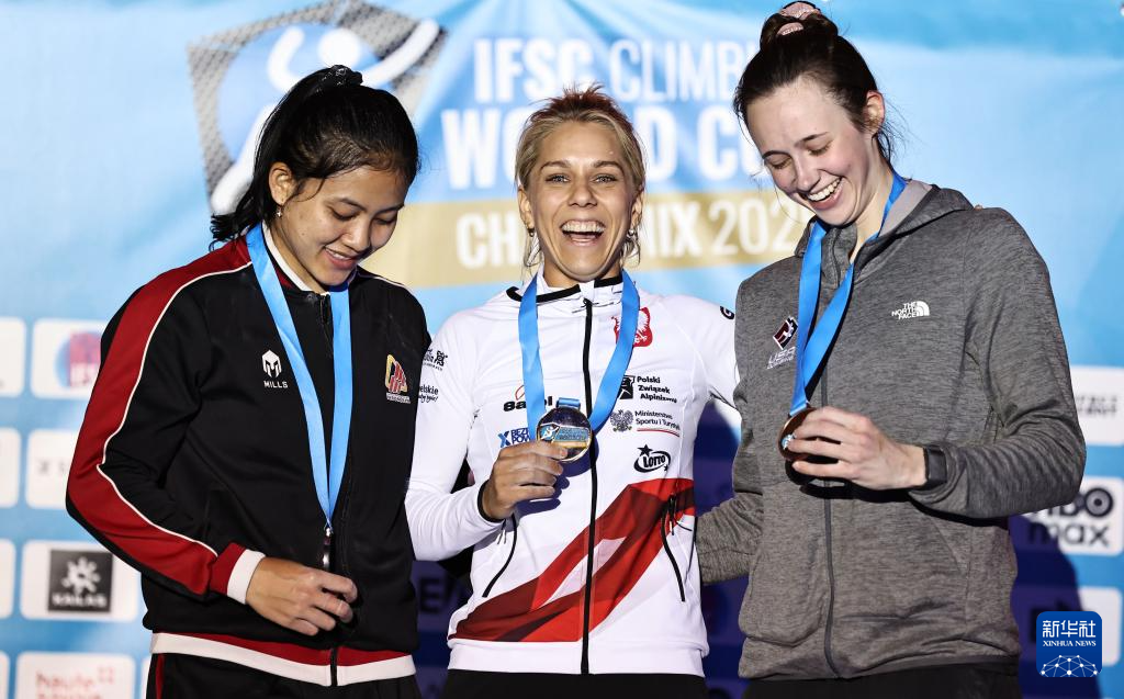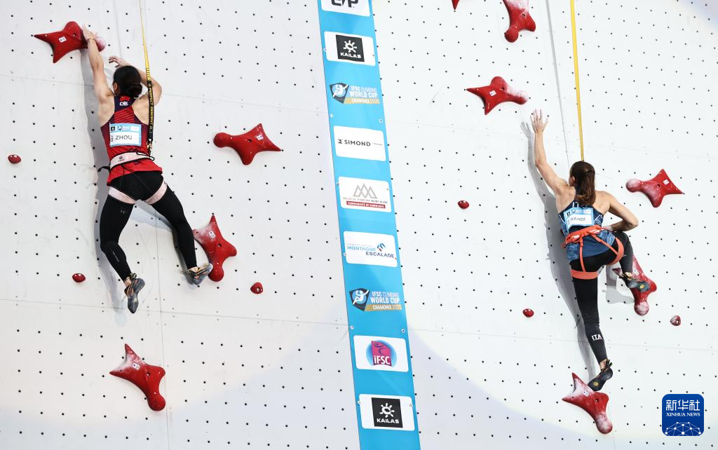 当日,在2025攀岩世界杯霞慕尼站女子速度决赛中,波兰选手米罗斯瓦夫夺冠。