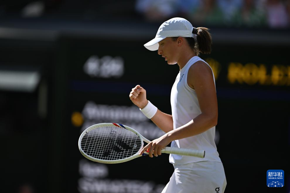 7月12日,斯维亚特克在比赛中庆祝得分。