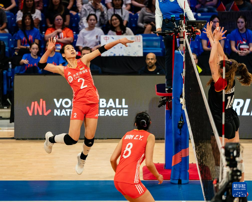 当日,在美国德克萨斯州阿灵顿举行的2025世界女排联赛分站赛中,中国队3比2战胜德国队。