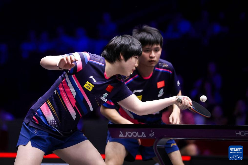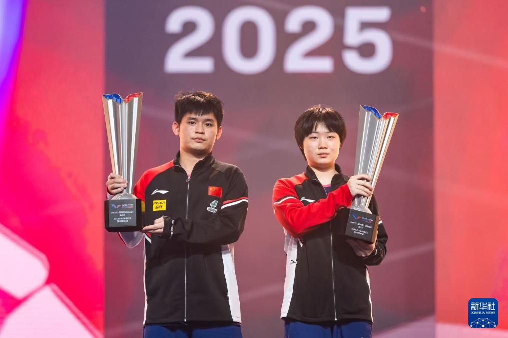 当日,在美国拉斯维加斯举行的世界乒乓球职业大联盟(WTT)美国乒乓球大满贯混双决赛中,中国组合林诗栋/蒯曼3比0战胜韩国组合林仲勋/申裕斌,获得冠军。