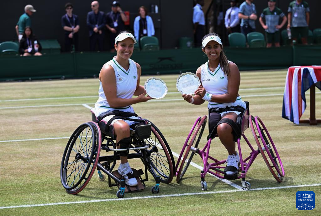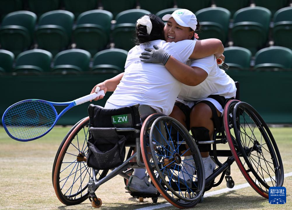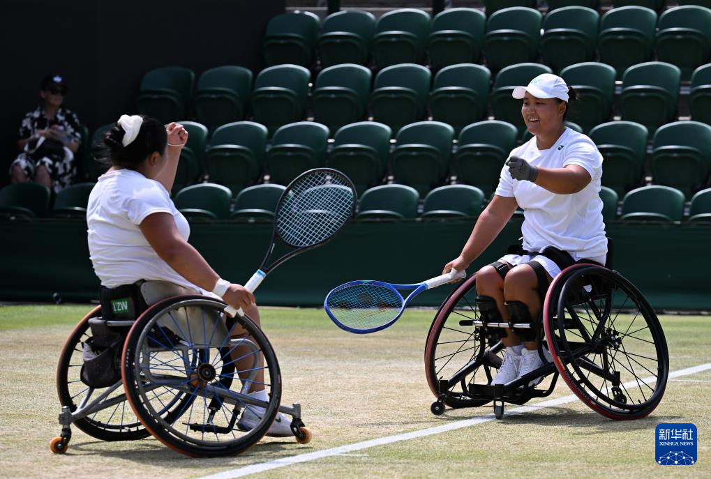 当日,在英国伦敦举行的2025温布尔登网球公开赛轮椅网球女子双打决赛中,中国组合李晓辉/王紫莹2比0战胜伯纳尔(哥伦比亚)/沙托(法国)组合,夺得冠军。
