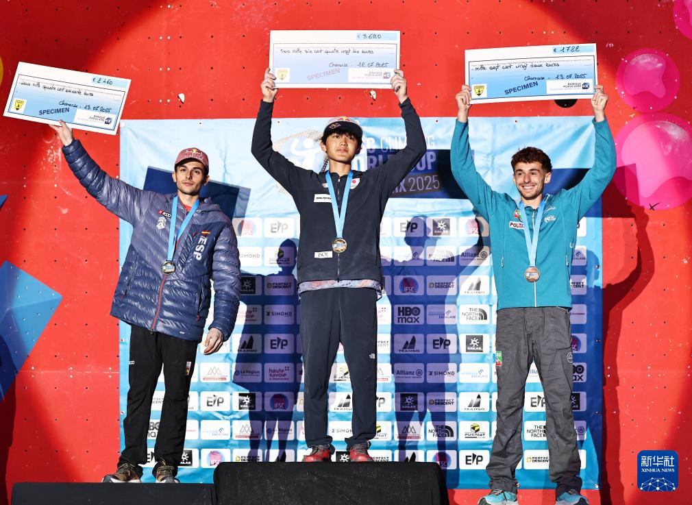 当日,在2025攀岩世界杯霞慕尼站男子难度决赛中,日本选手安乐宙斗夺得冠军。