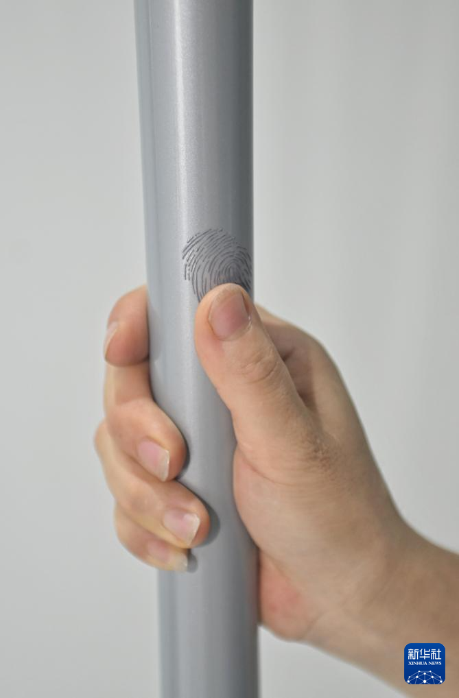 这是7月16日拍摄的采火棒,棒体部分加入了宝墩遗址出土陶片上4500年前古人的指纹,寓意古今对话。新华社记者 刘坤 摄