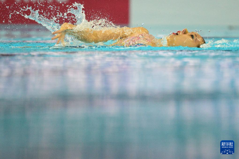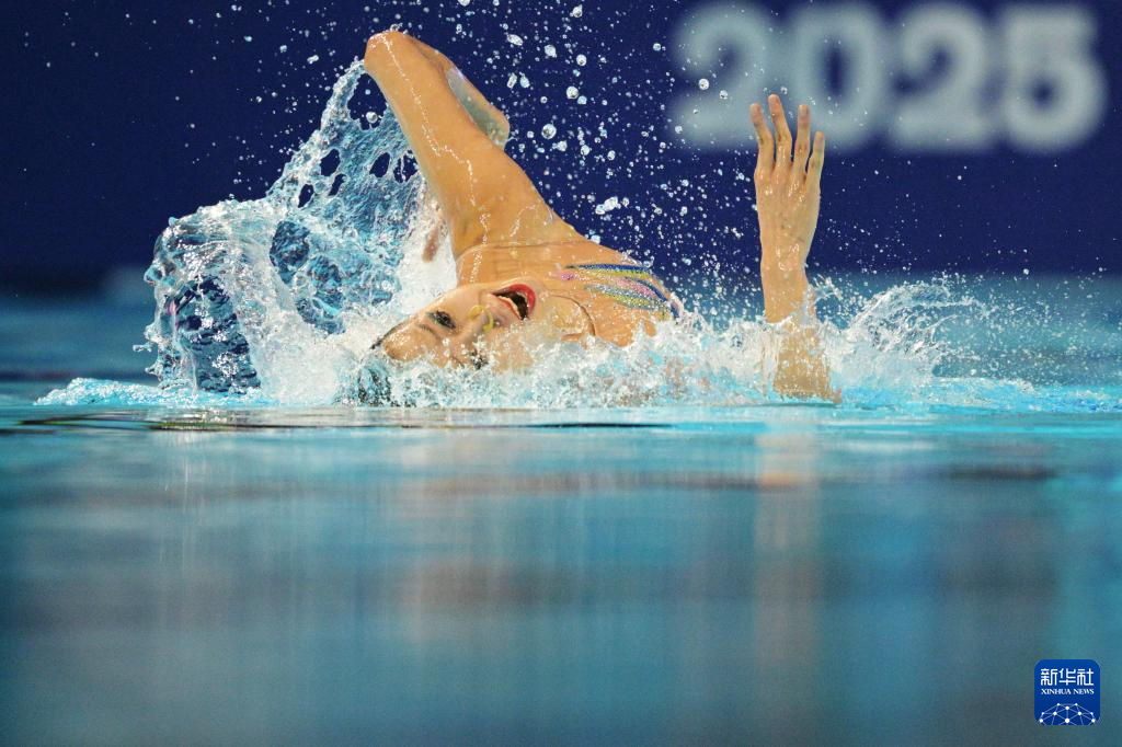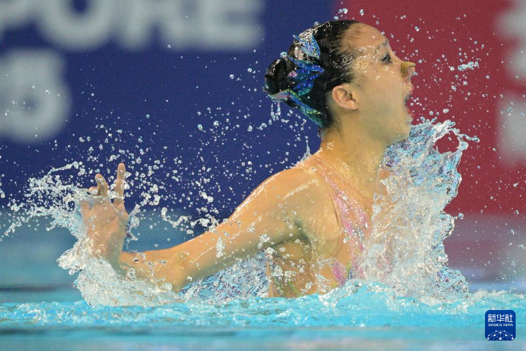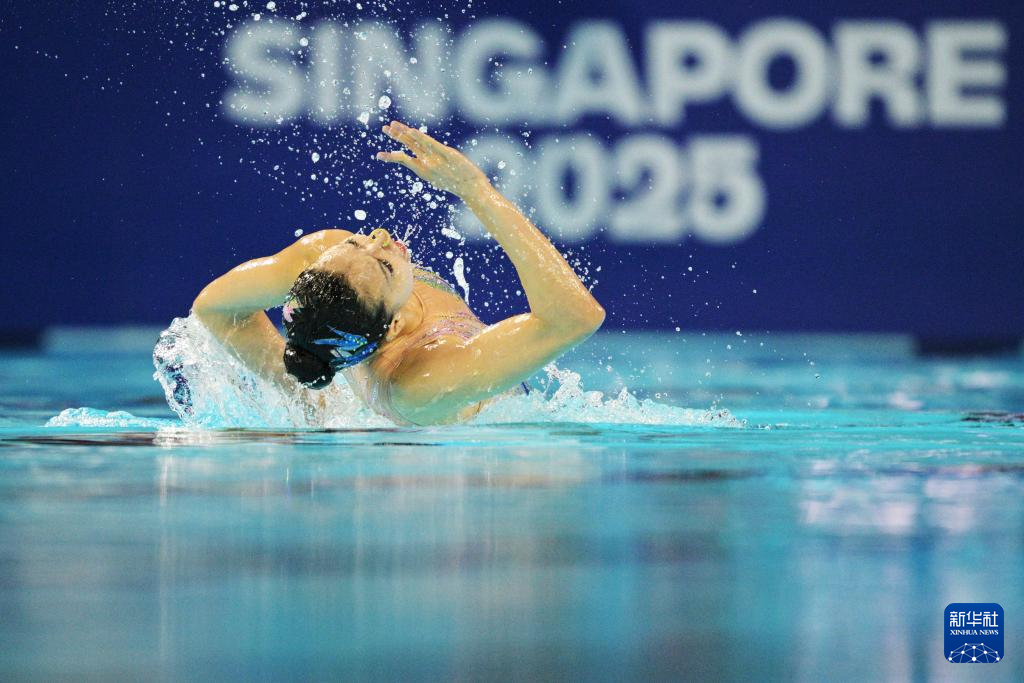当日,2025年世界游泳锦标赛花样游泳女子单人技术自选预赛在新加坡举行。