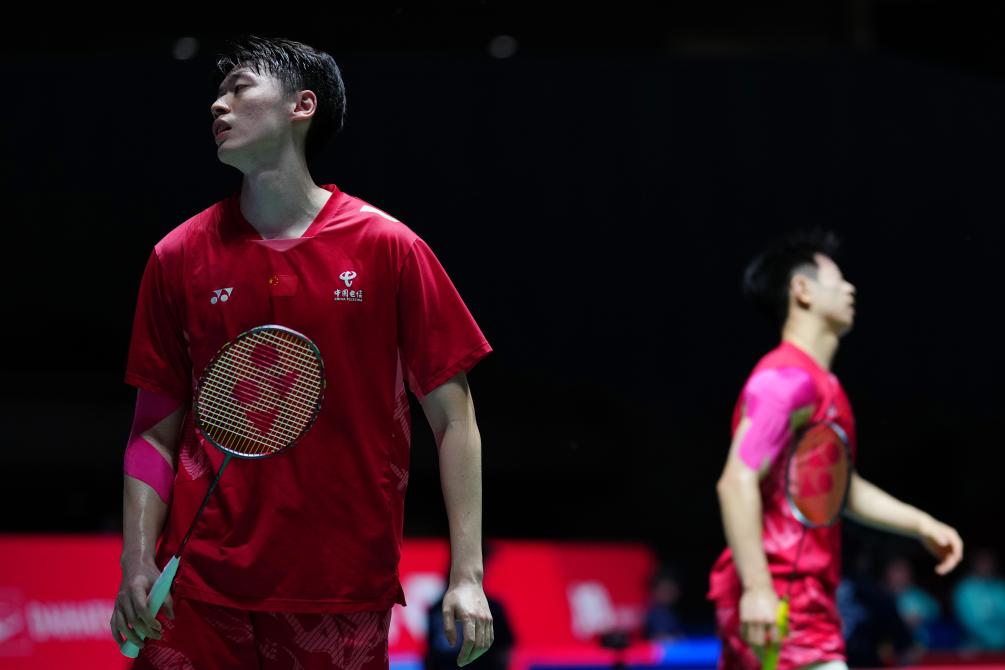 7月17日,陈柏阳/刘毅(左)在比赛中失分后。新华社记者 贾浩成 摄