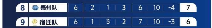 扬州队则暂列倒数第三