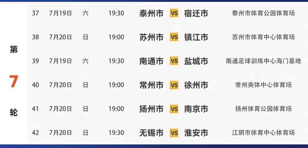 就是本轮“苏超”的六场对决