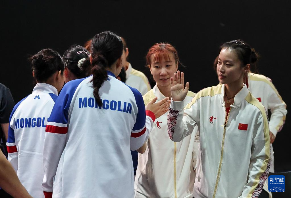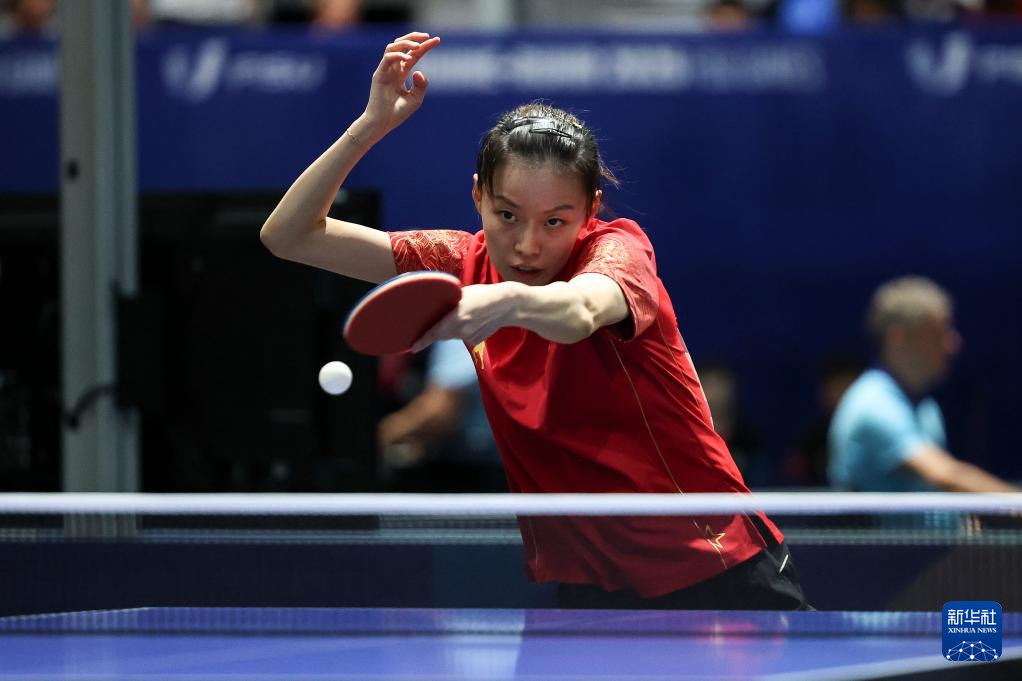 当日,在德国埃森举行的2025年莱茵-鲁尔世界大学生夏季运动会乒乓球女子团体小组赛中,中国队3比0战胜蒙古国队。