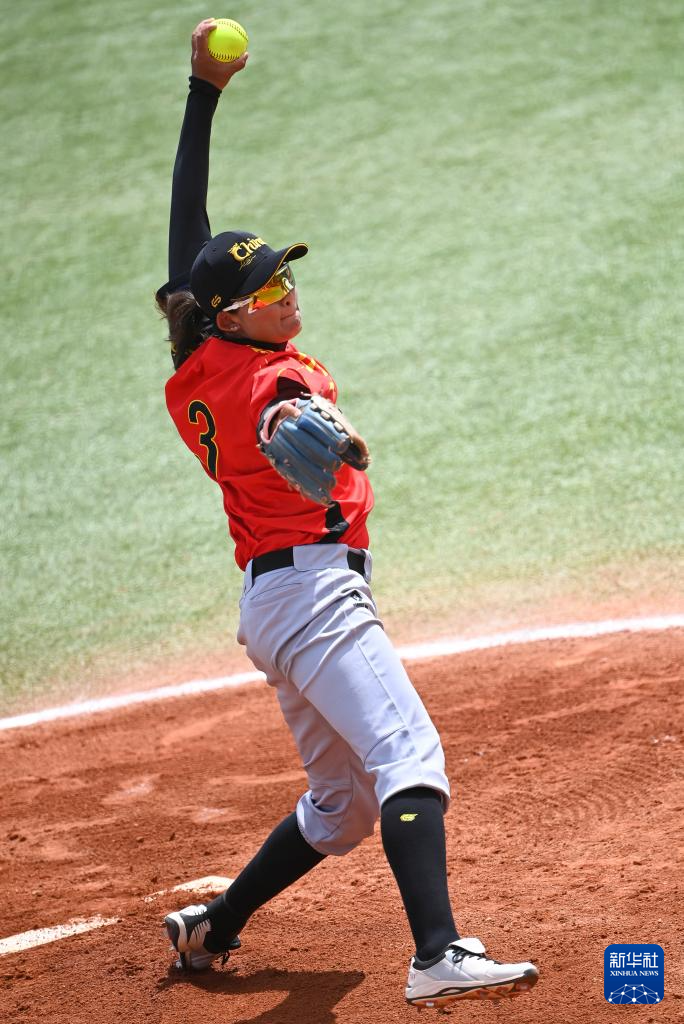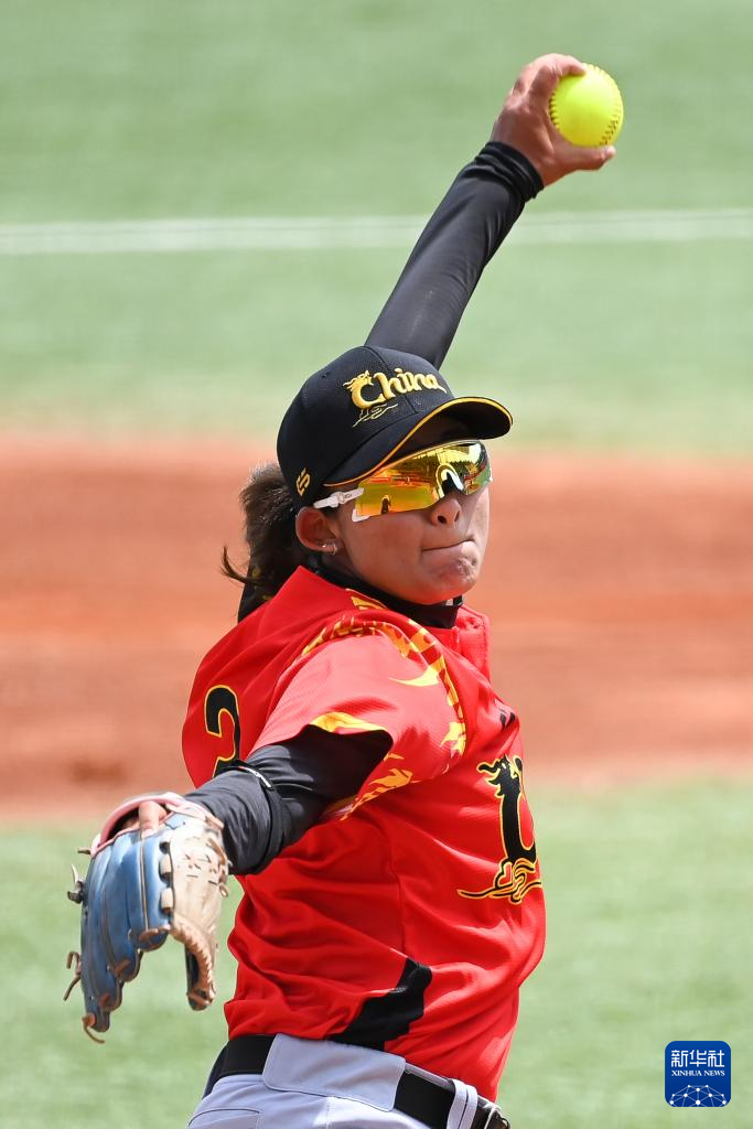 7月18日,中国队球员刘彩红在比赛中投球。新华社记者 邹竞一 摄