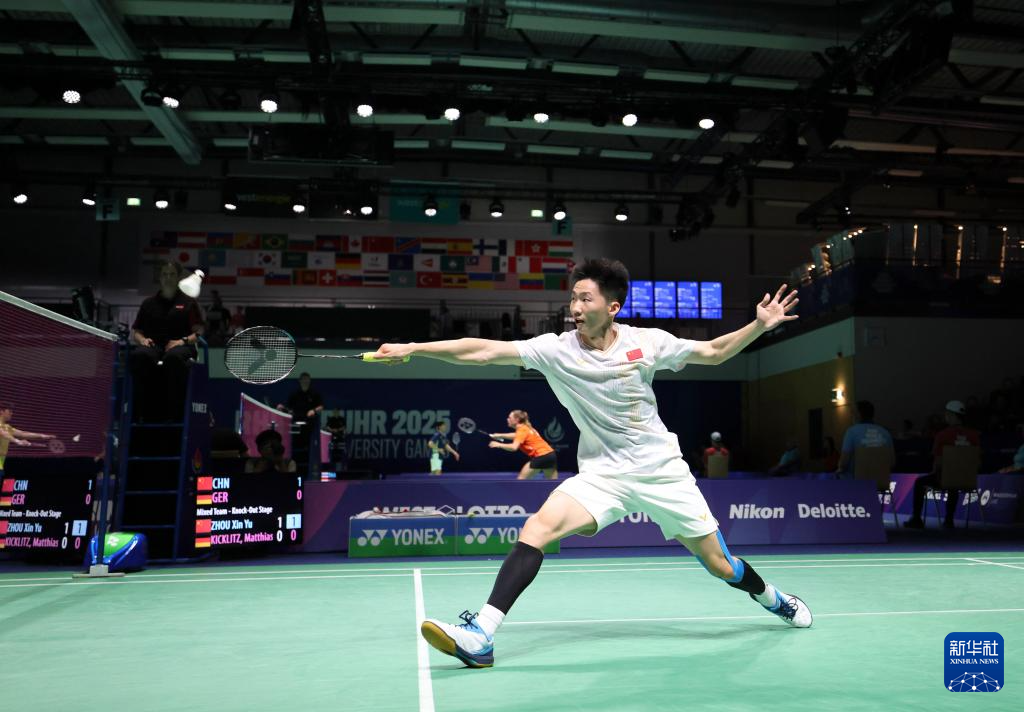 当日,在德国米尔海姆举行的2025年莱茵-鲁尔世界大学生夏季运动会羽毛球混合团体八分之一决赛中,中国队3比0战胜德国队,晋级八强。