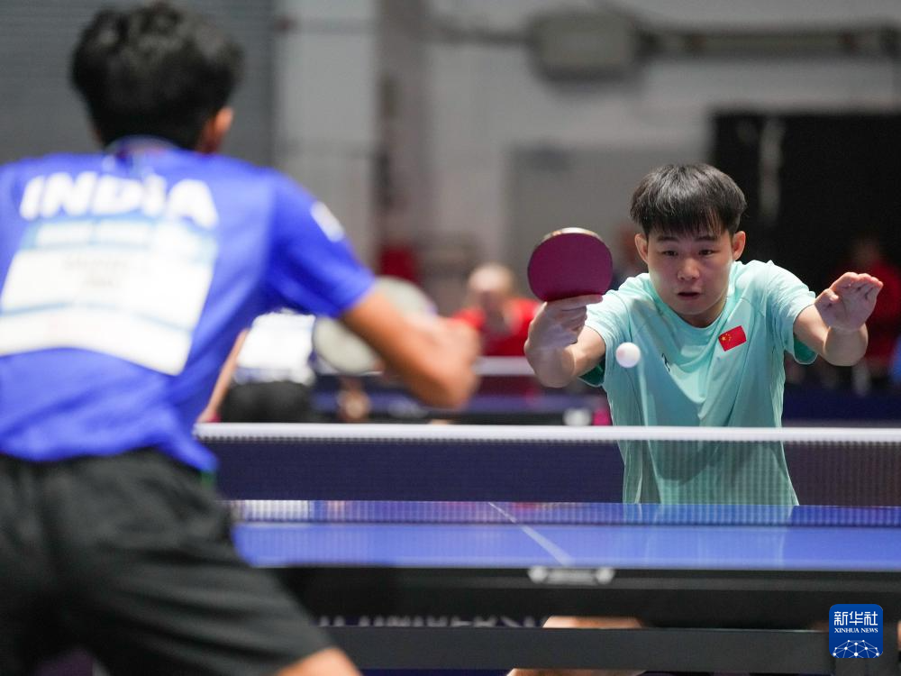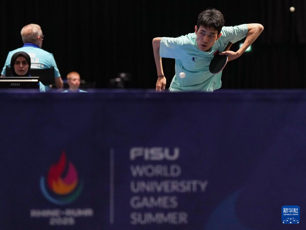 当日,在德国埃森举行的2025年莱茵-鲁尔世界大学生夏季运动会乒乓球男子团体八分之一决赛中,中国队3比0战胜印度队,晋级八强。