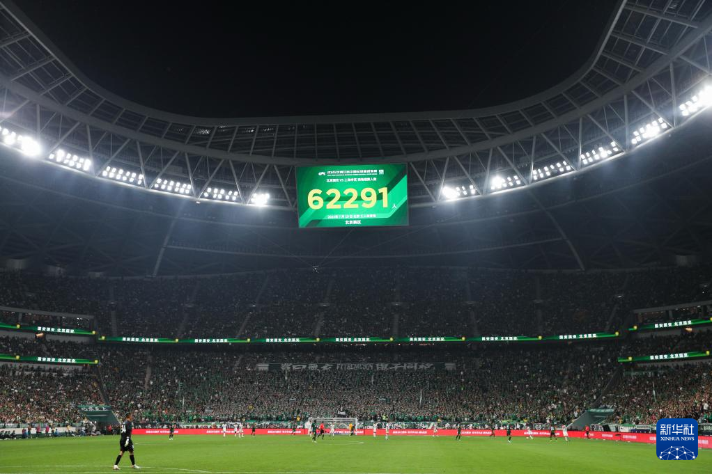7月19日,球场大屏显示本场比赛共有62291名观众到场观赛,打破了自2023年北京工人体育场改造复建项目完成后的上座率纪录。