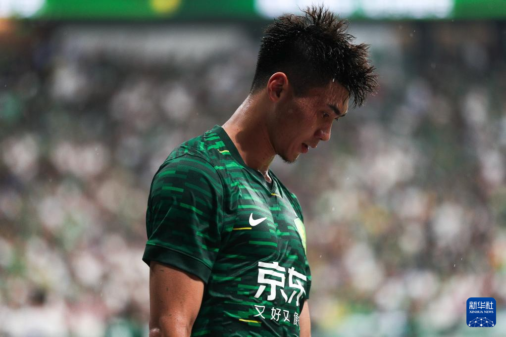 7月19日,北京国安队球员吴少聪在比赛中射门失败。