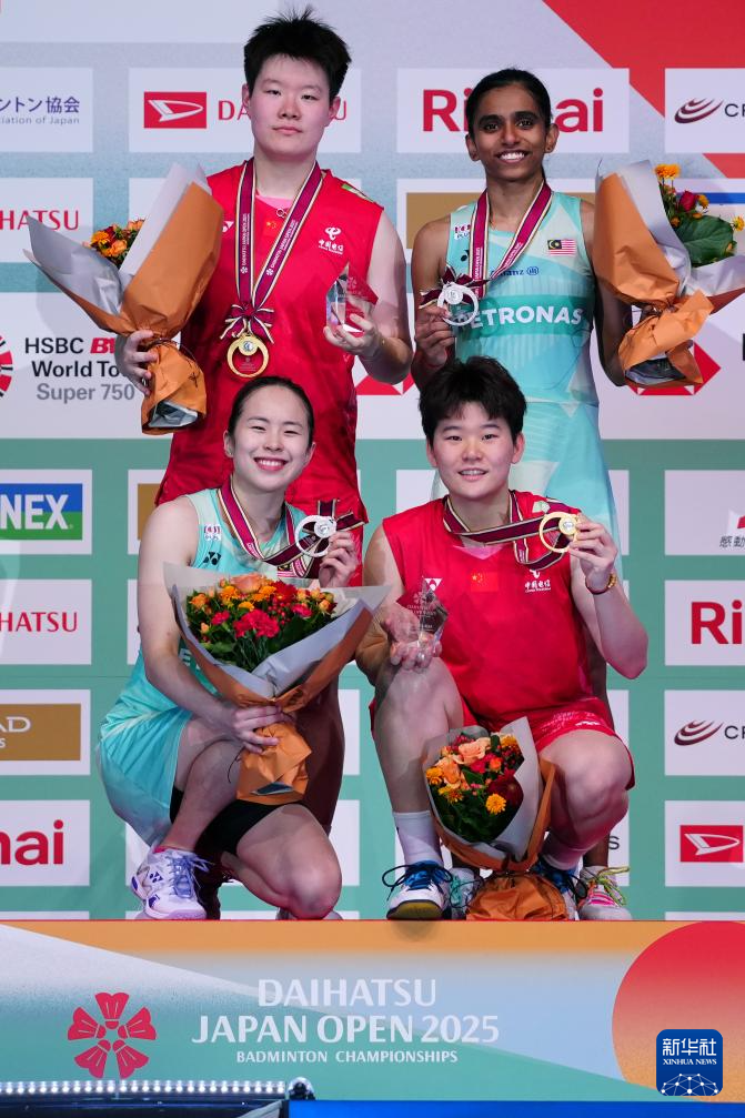 当日,在日本东京举行的2025年日本羽毛球公开赛女子双打决赛中,中国组合刘圣书/谭宁2比0战胜马来西亚组合陈康乐/蒂娜,夺得冠军。