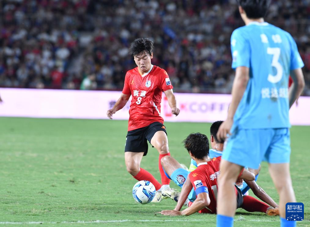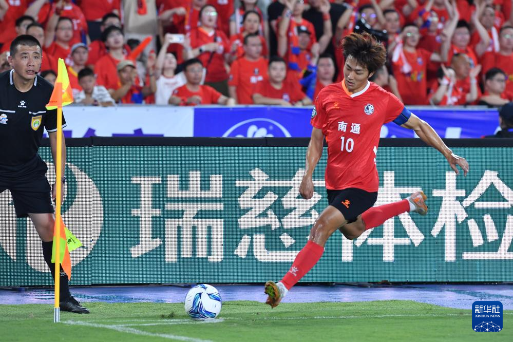 当日,在江苏南通举行的2025江苏省城市足球联赛第七轮比赛中,南通队主场2比1战胜盐城队。