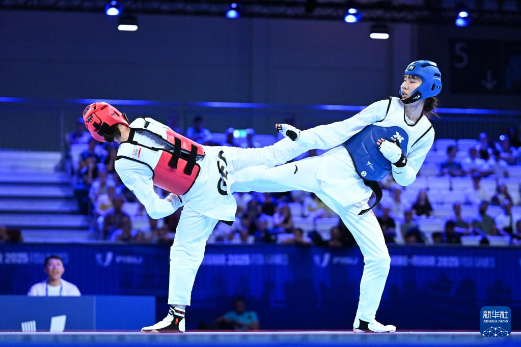 当日,在德国埃森举行的2025年莱茵-鲁尔世界大学生夏季运动会跆拳道女子49公斤级决赛中,中国选手马静月战胜德国队选手基斯卡尔特,获得金牌。