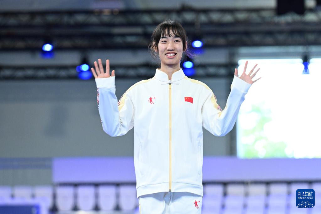 7月20日,中国选手马静月在颁奖仪式上。新华社记者 连漪 摄