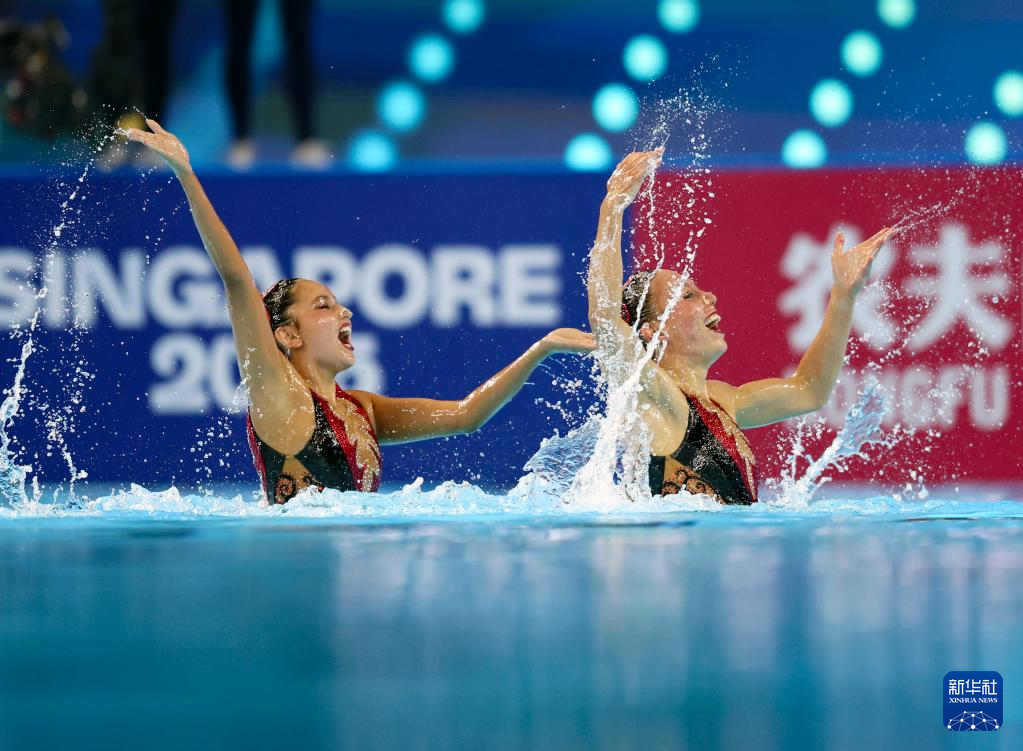 当日,2025年世界游泳锦标赛花样游泳女子双人技术自选决赛在新加坡举行。