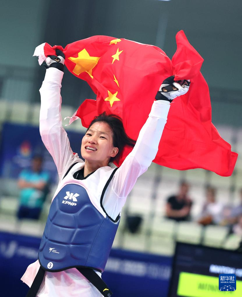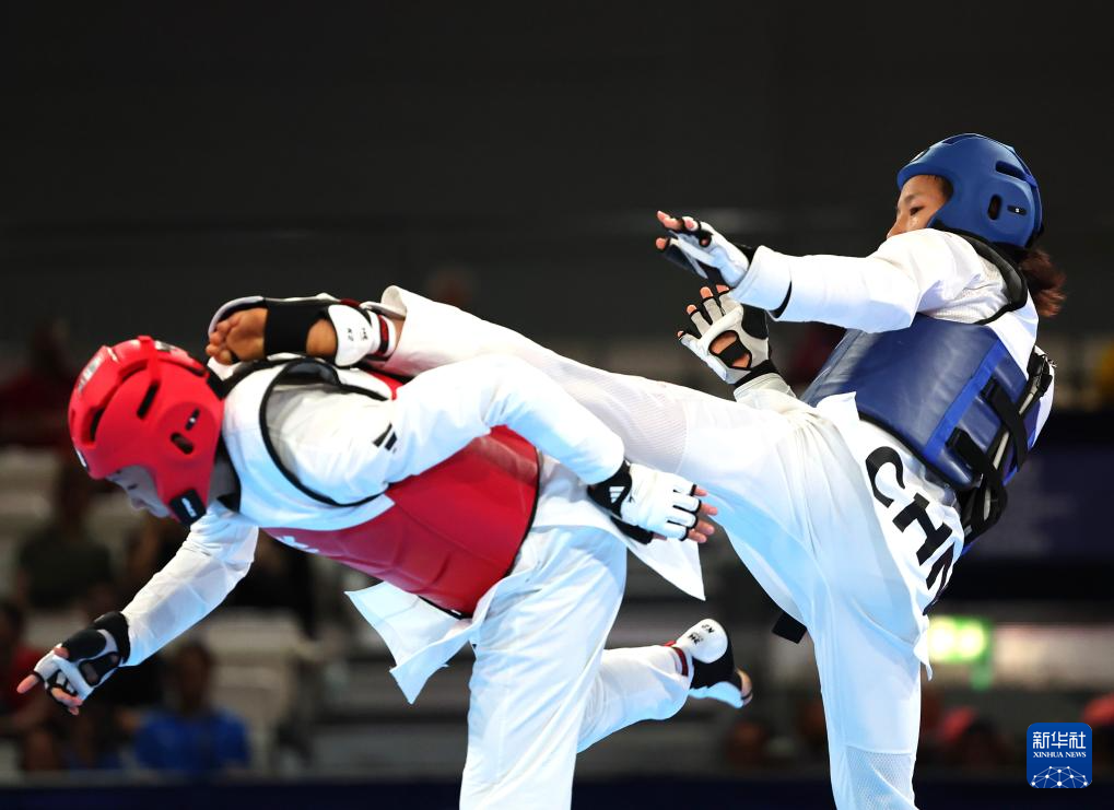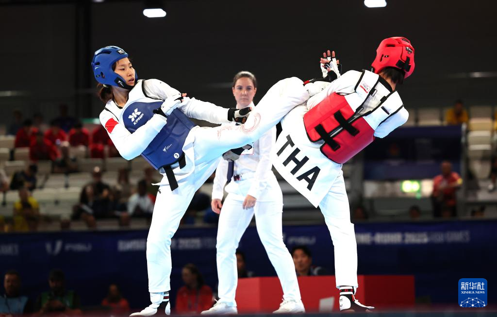 当日,在2025年德国莱茵-鲁尔世界大学生夏季运动会跆拳道女子53公斤级决赛中,中国选手郭清2比1战胜泰国选手宗功拉达那瓦达那,夺得冠军。