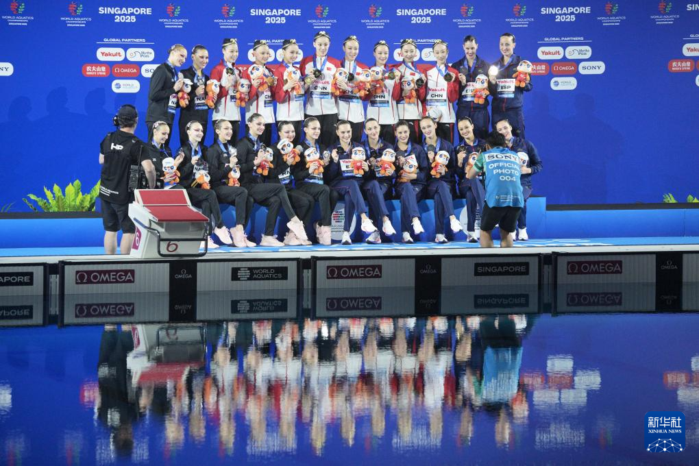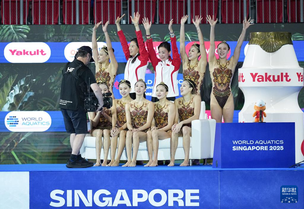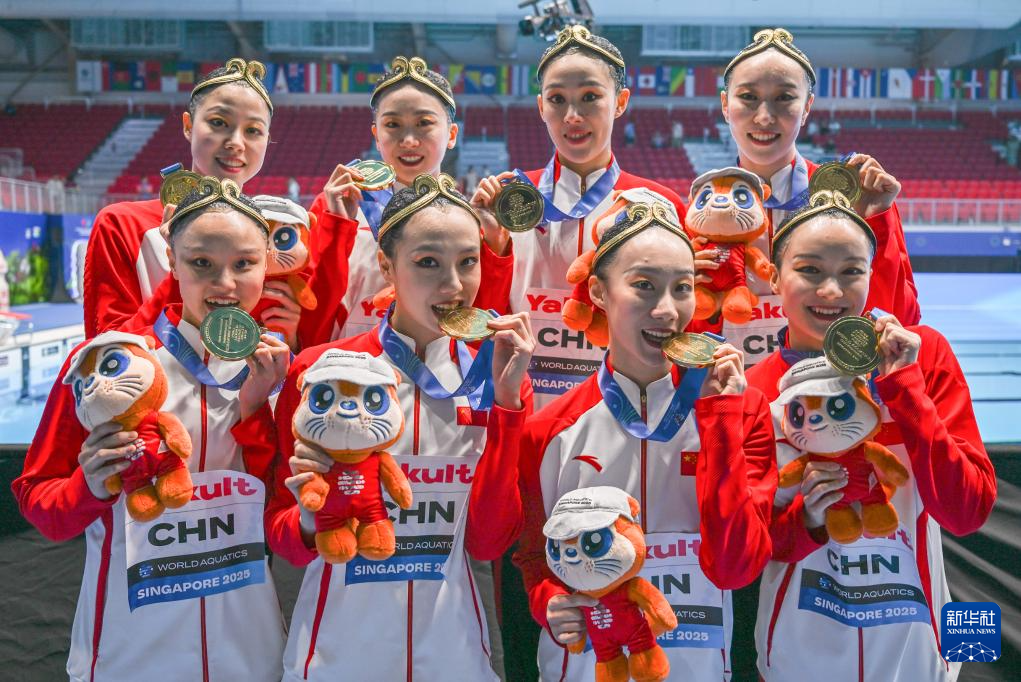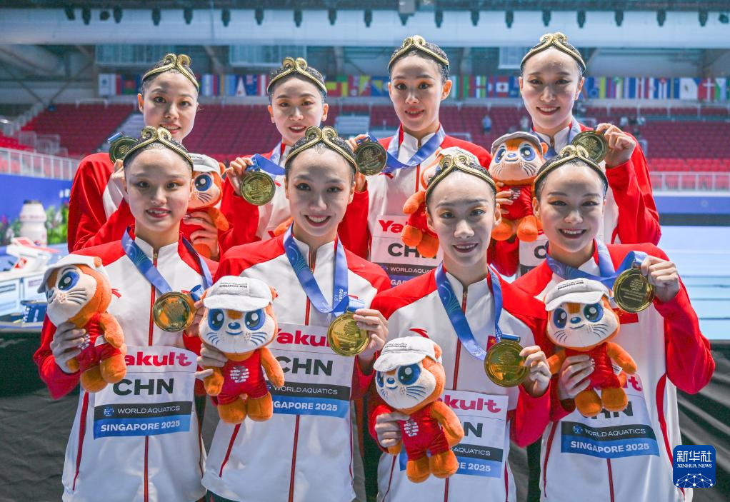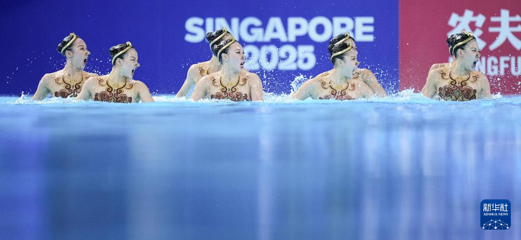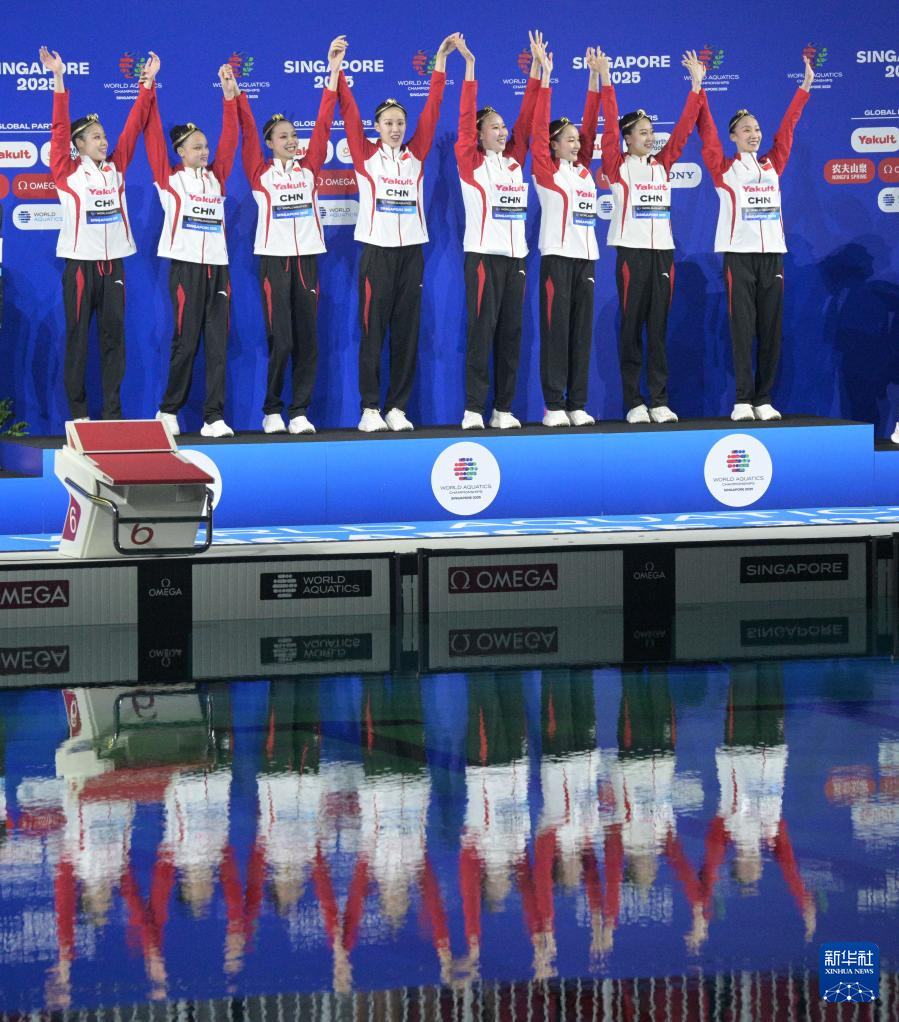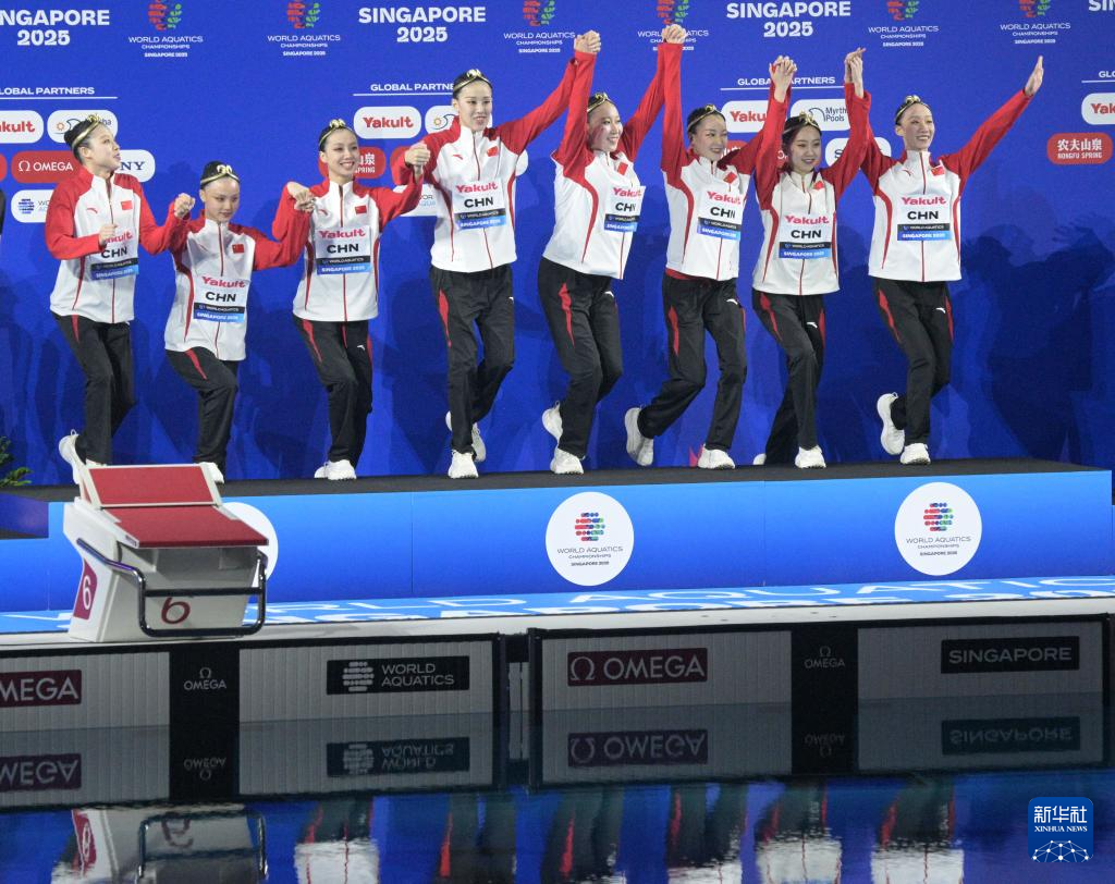 当日,在新加坡举行的2025年世界游泳锦标赛花样游泳集体技术自选决赛中,中国队夺得冠军。