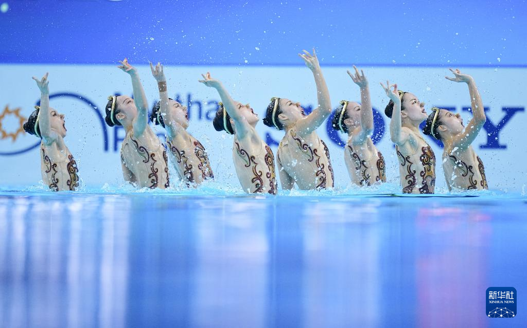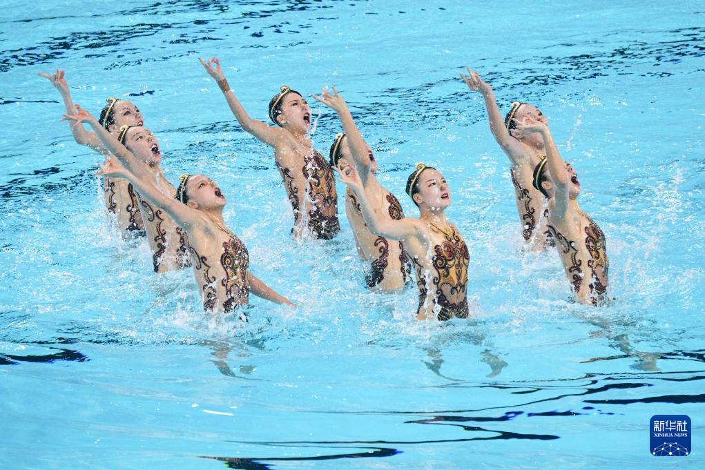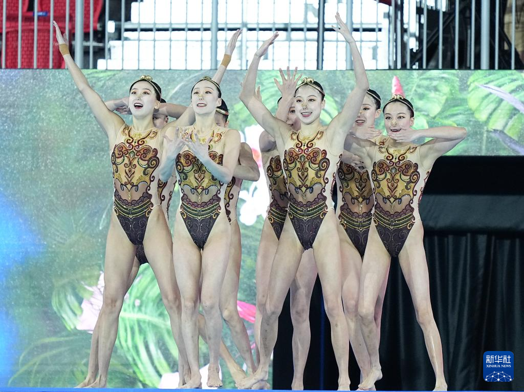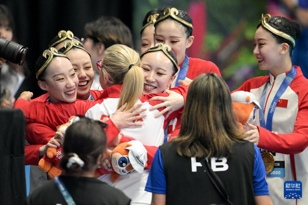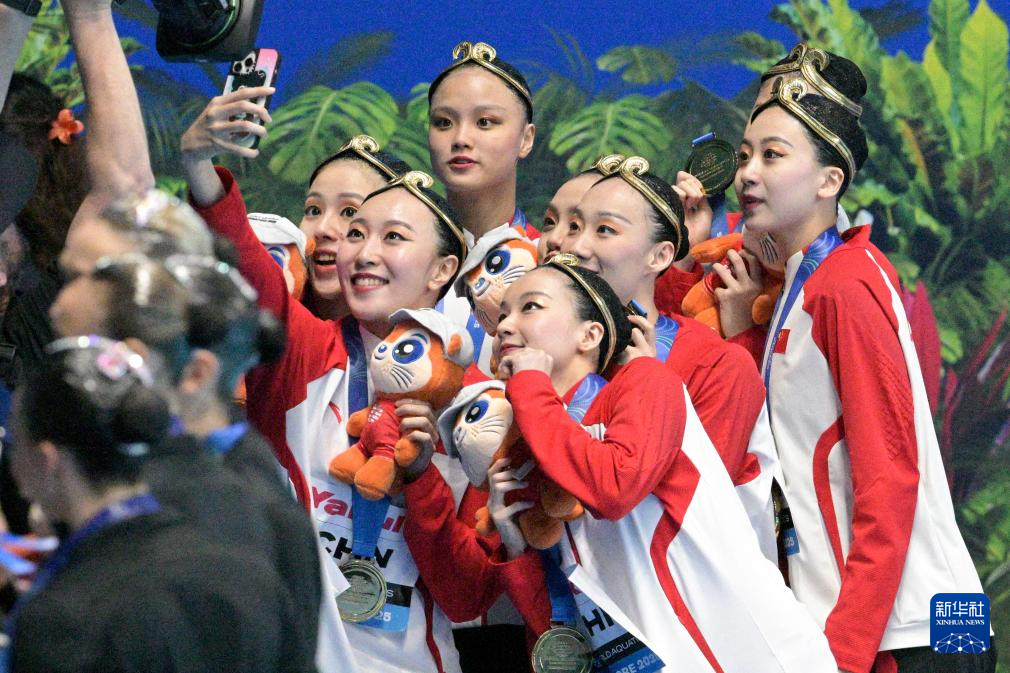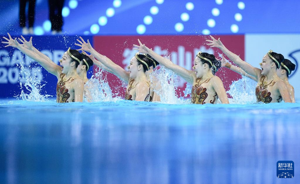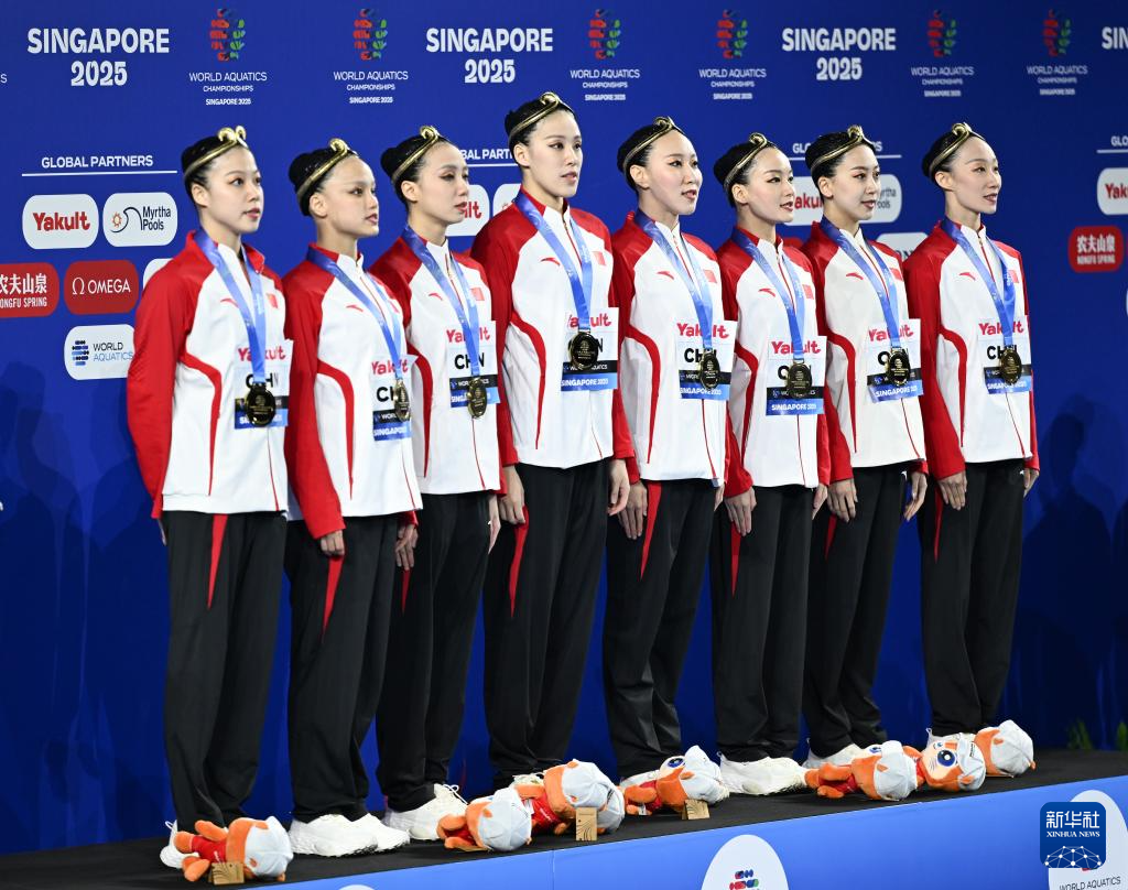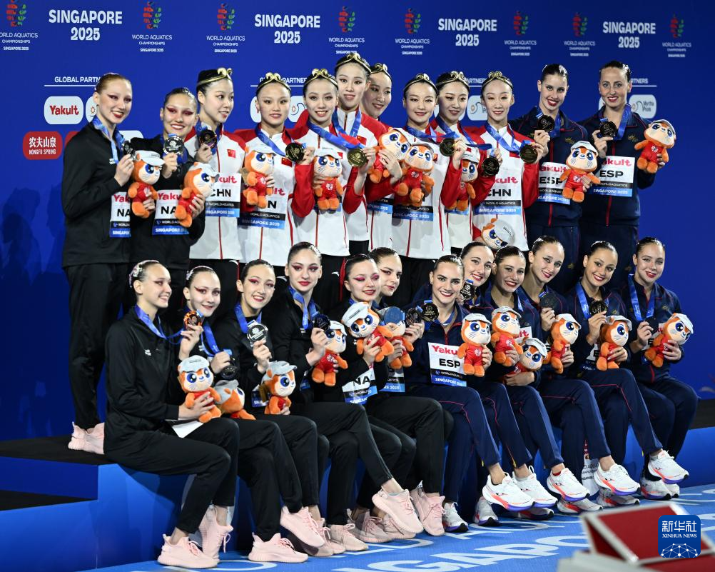 当日,在新加坡举行的2025年世界游泳锦标赛花样游泳集体技术自选决赛中,中国队夺得冠军。