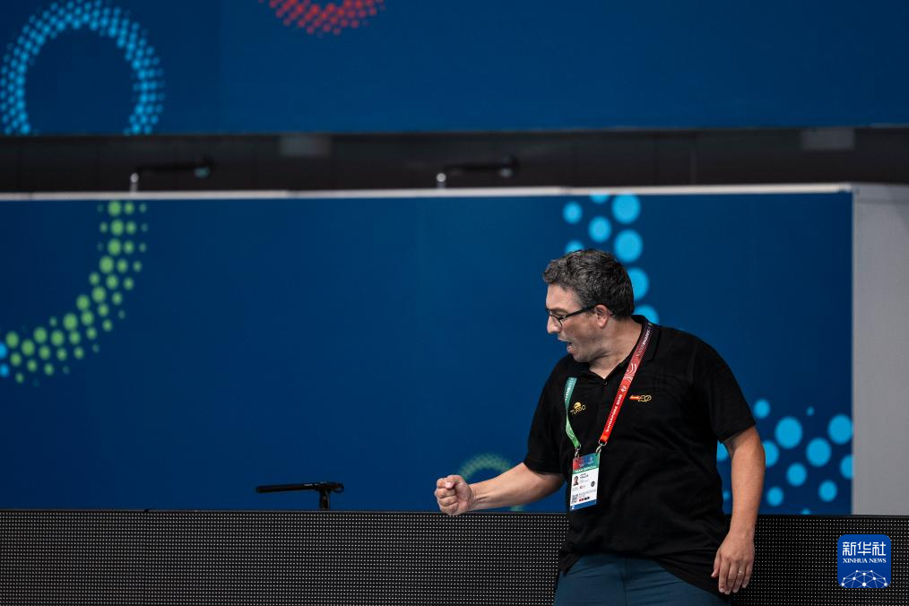7月23日,西班牙队主教练巴尔斯庆祝球队进球。新华社记者 伍志尊 摄