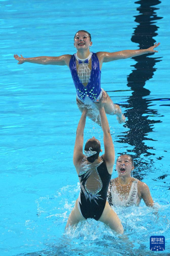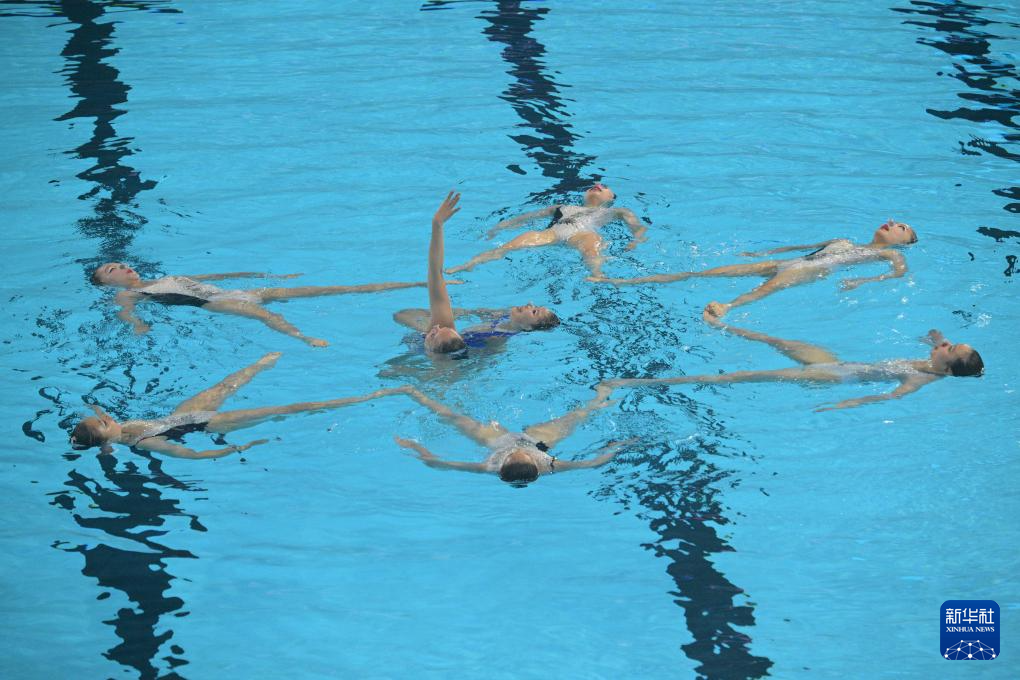 当日,2025年世界游泳锦标赛花样游泳集体技巧自选预赛在新加坡举行。