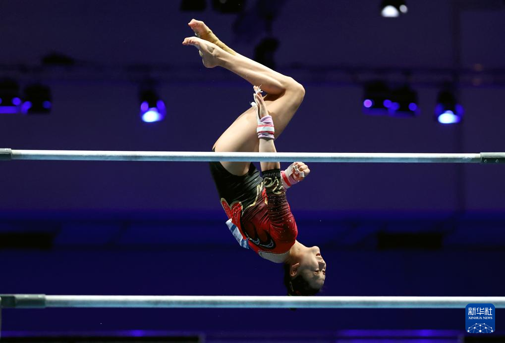 7月24日,中国选手向露露在高低杠比赛中。新华社记者 张晨 摄