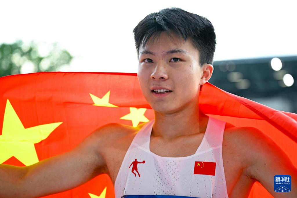 7月24日,舒衡在比赛后庆祝夺冠。新华社发(乌尔里希·胡夫纳格尔摄)