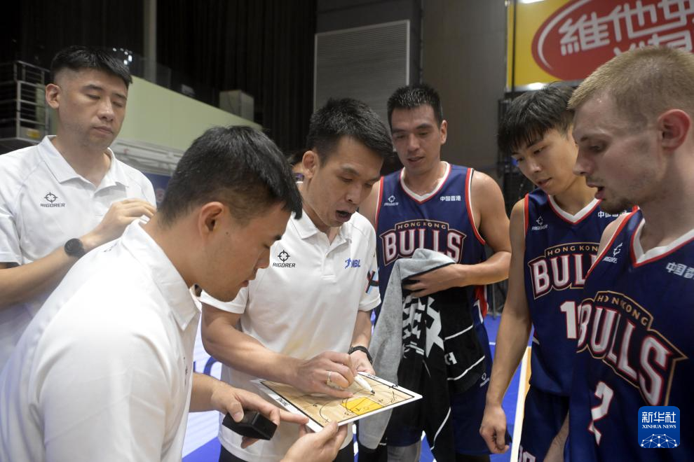 7月25日,香港金牛队主教练解立彬(左三)在比赛间隙指导球员。
