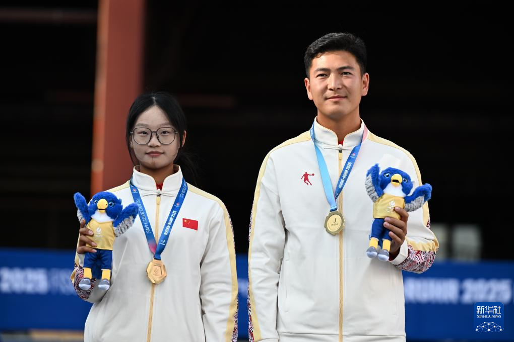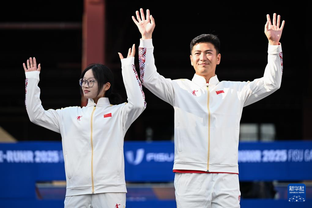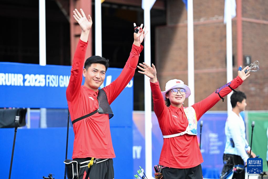 当日,在德国埃森举行的2025年莱茵-鲁尔世界大学生夏季运动会射箭反曲弓混合团体赛决赛中,中国组合王岩/刘妍6比2战胜日本组合园田稚/舟桥悠矢,获得冠军。