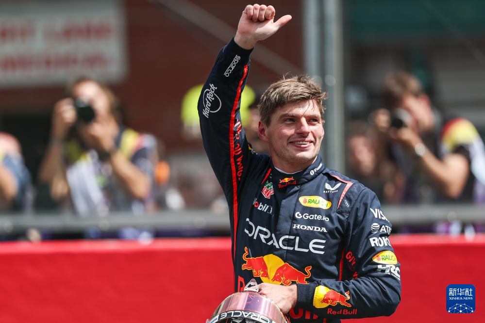 7月26日,维斯塔潘在赛后庆祝胜利。