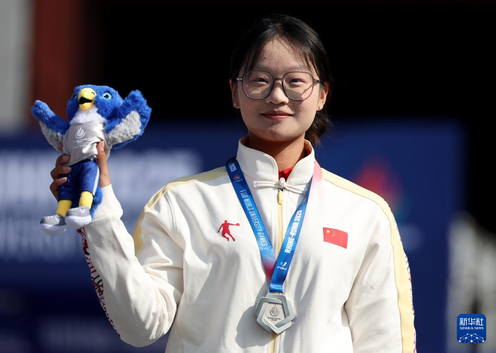 当日,2025年莱茵-鲁尔世界大学生夏季运动会射箭女子反曲弓个人赛决赛在德国埃森举行,中国选手刘妍秀获得银牌。