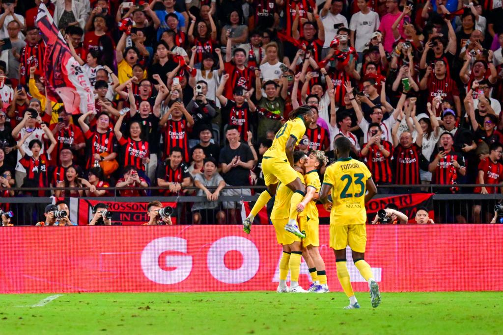 当日,在香港启德体育园举行的香港足球盛会首场比赛中,意甲AC米兰队4比2战胜英超利物浦队。