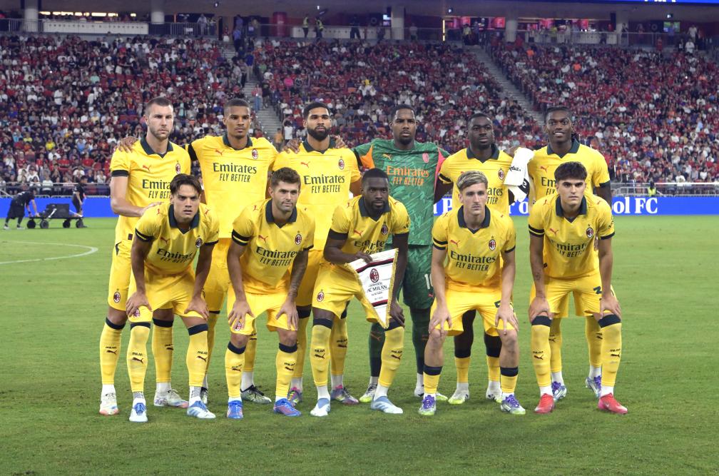 7月26日,意甲AC米兰队首发球员在赛前合影。