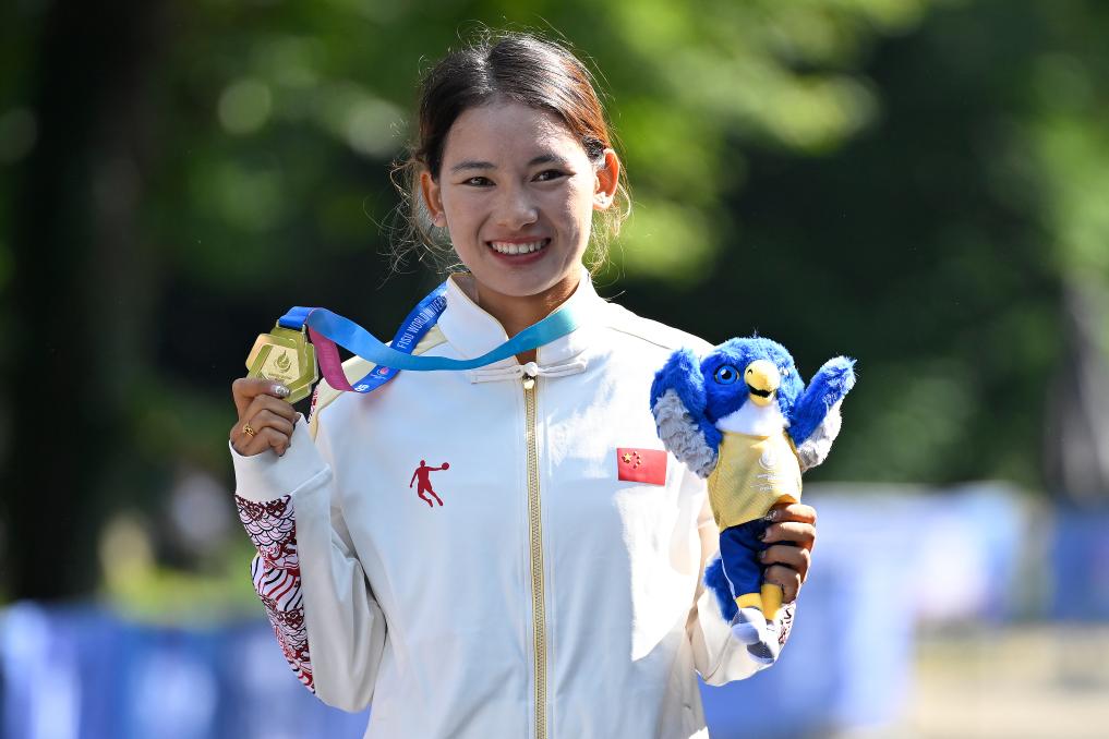 7月26日,马秀针在颁奖仪式上。新华社发(乌尔里希·胡夫纳格尔 摄)
