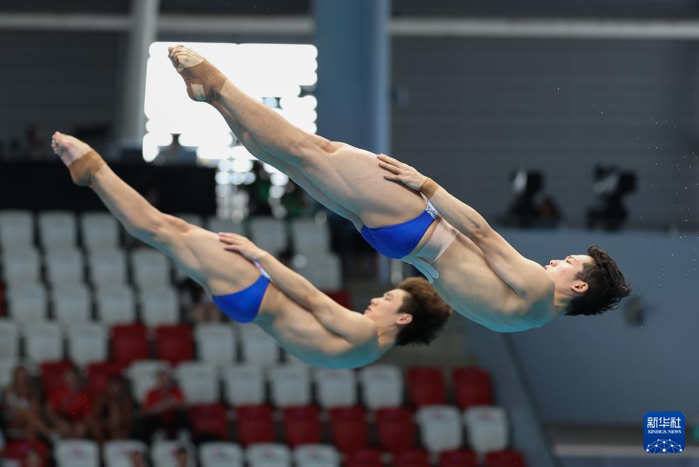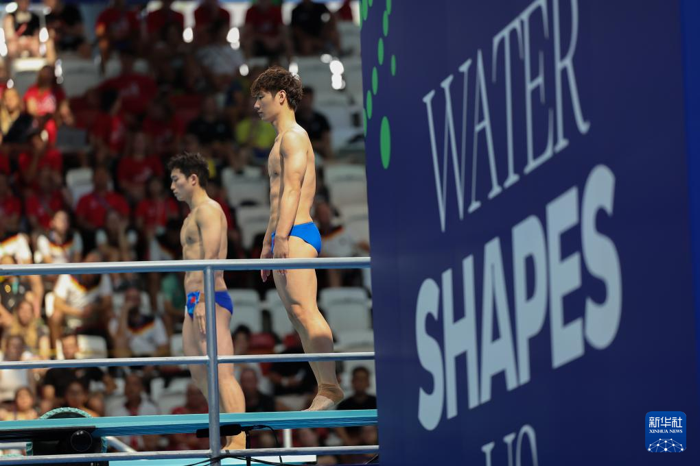 当日,2025年世界游泳锦标赛跳水男子双人3米板决赛在新加坡举行。