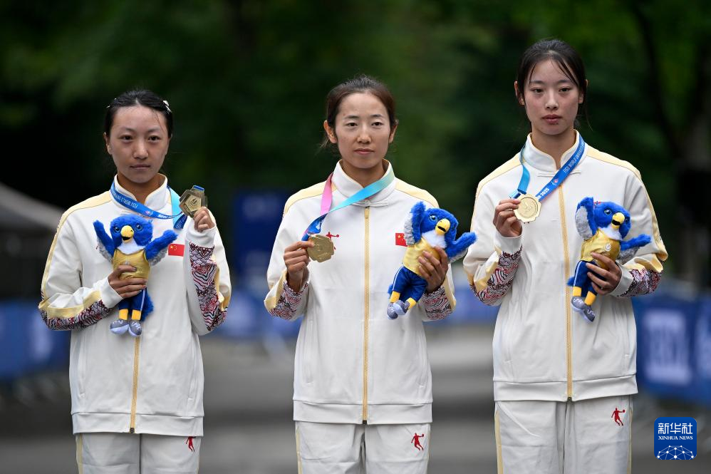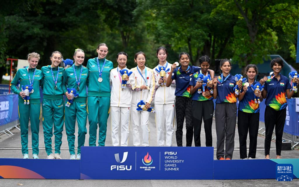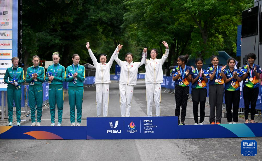 当日,在德国波鸿举行的2025年莱茵-鲁尔世界大学生夏季运动会女子20公里竞走决赛中,由宁金霖、季海英和罗悦组成的中国队夺得团体冠军。