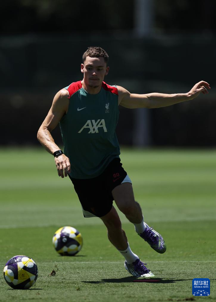 7月29日,利物浦队球员罗伯逊(前)在训练中。新华社记者 贾浩成 摄