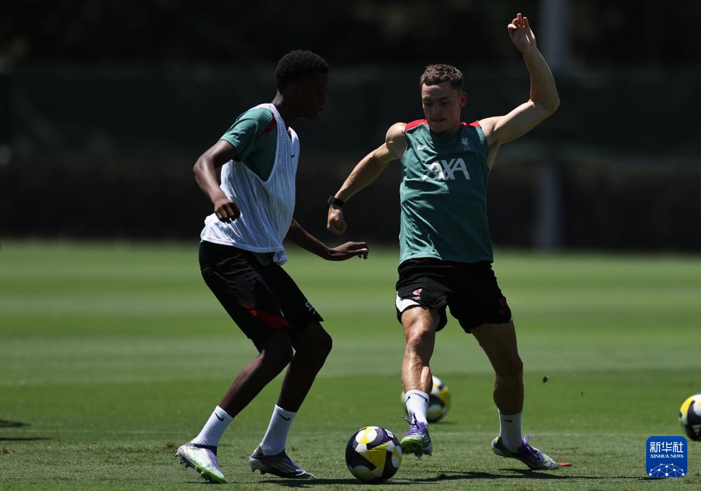 7月29日,利物浦队球员维尔茨(右)在训练中。新华社记者 贾浩成 摄