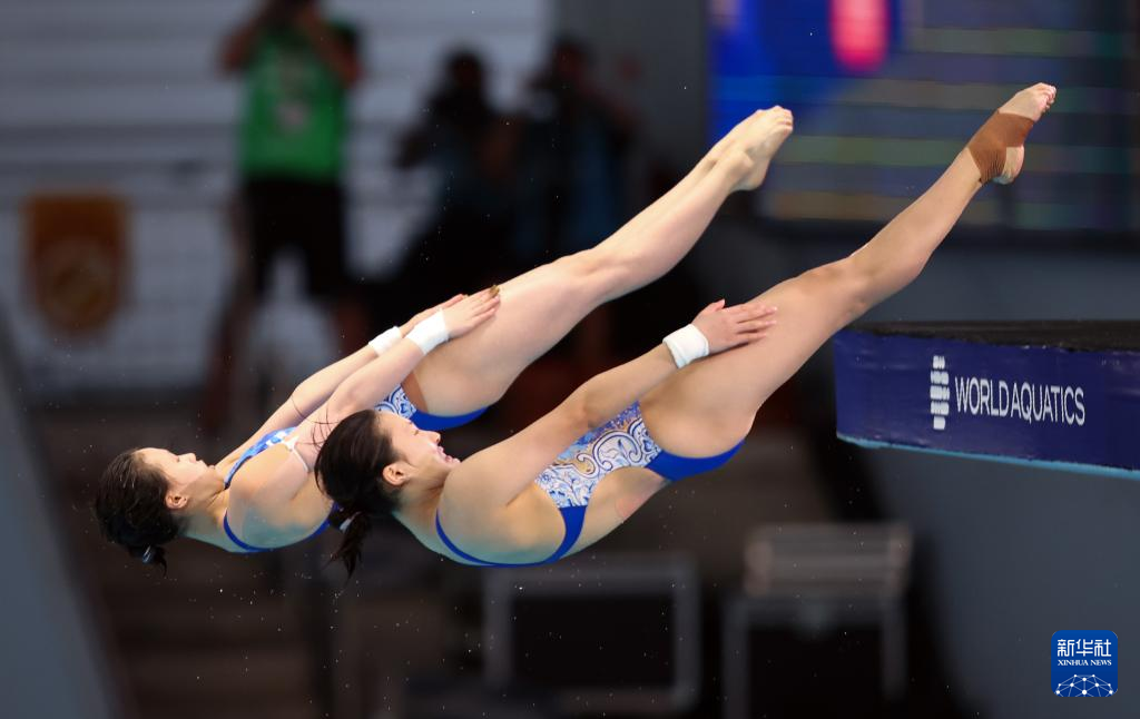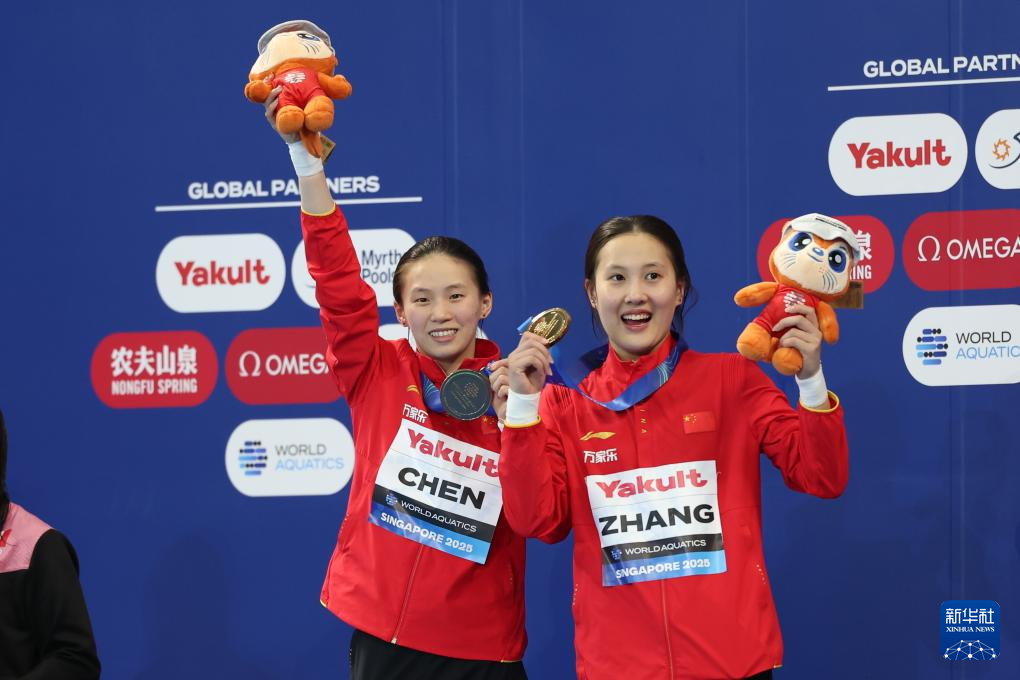 当日,在新加坡举行的2025年世界游泳锦标赛跳水女子双人10米台决赛中,中国组合陈芋汐/掌敏洁夺冠。