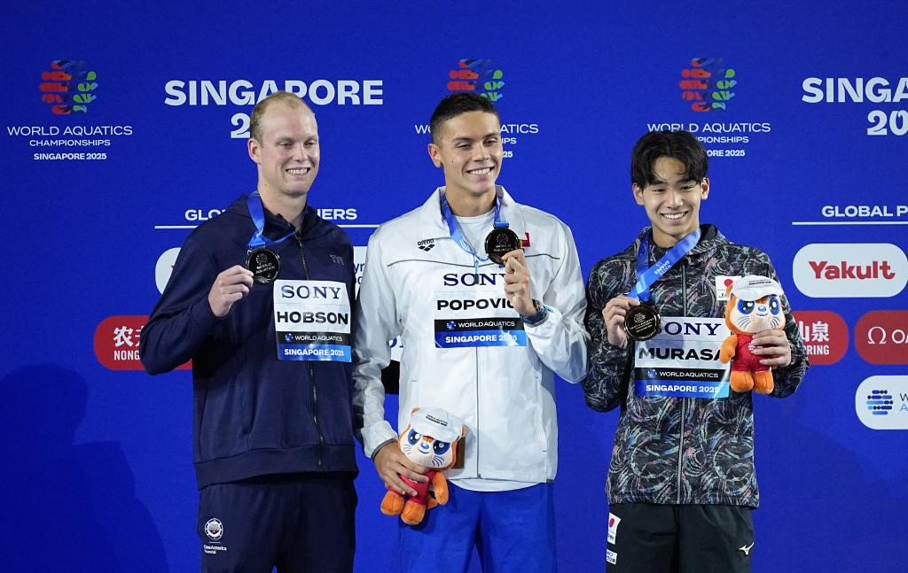 巴黎奥运会金牌得主、罗马尼亚名将波波维奇在男子200米自由泳决赛中后来居上,以1分43秒53夺得金牌,美国选手霍布森和日本选手村佐达也分列第二、三位。