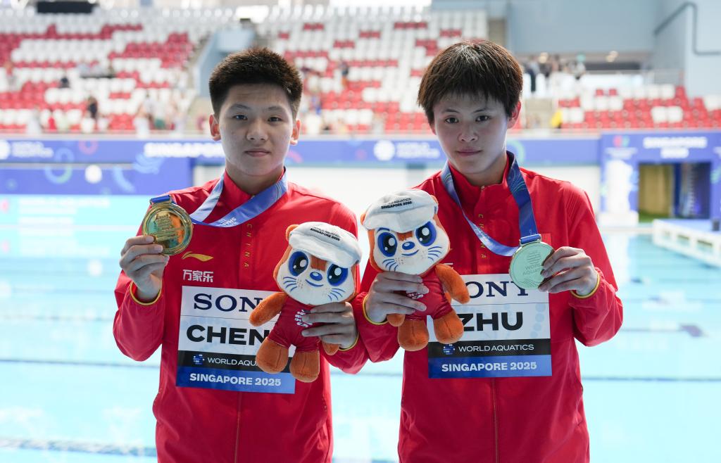 新华社新加坡7月29日电(记者岳晨星、王子江)29日的新加坡游泳世锦赛男子双人10米台决赛,当比赛最终成绩显示在大屏幕上时,来自俄罗斯的中立运动员组合希雷黑尔/特尔诺沃伊仰天长叹,脸上写满失望。他们以0.93分之差负于中国组合程子龙与朱子锋,与金牌失之交臂。