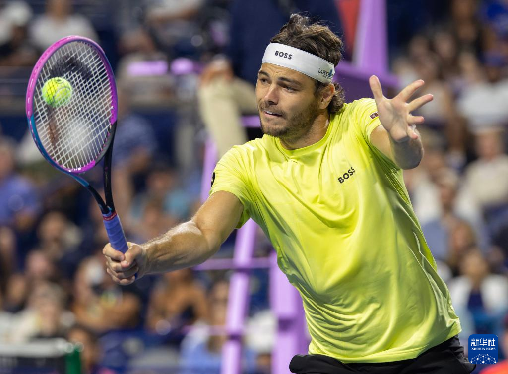 7月30日,美国选手弗里茨在比赛中回球。新华社发(邹峥摄)