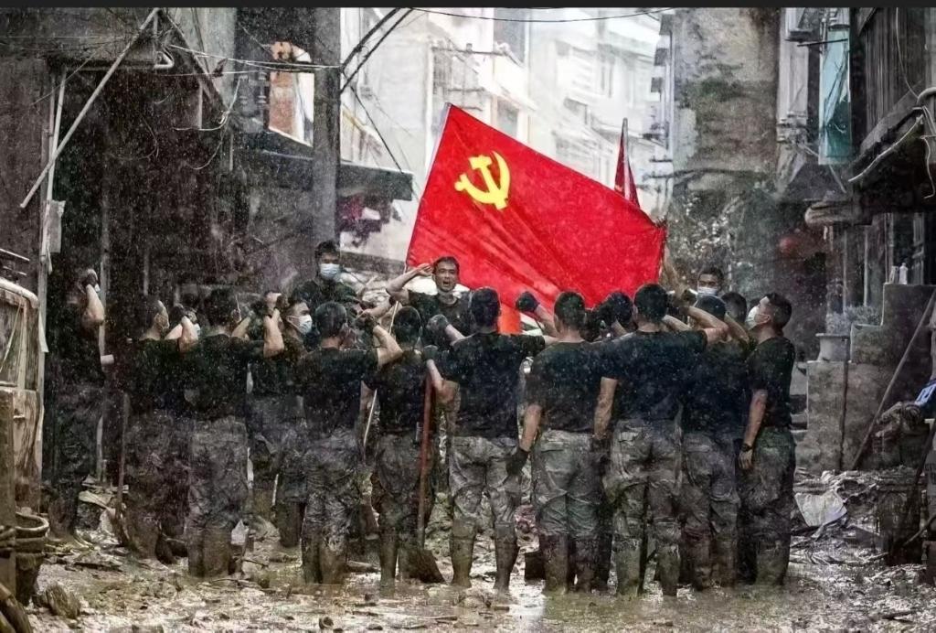 图为“村超”球星李发雄(左)和王香兵(右)在“村超”球场救灾
