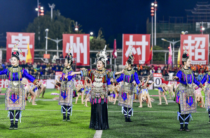 2025年1月4日,人们在“村超村晚”活动中表演非遗节目“多耶”。新华社记者杨文斌摄