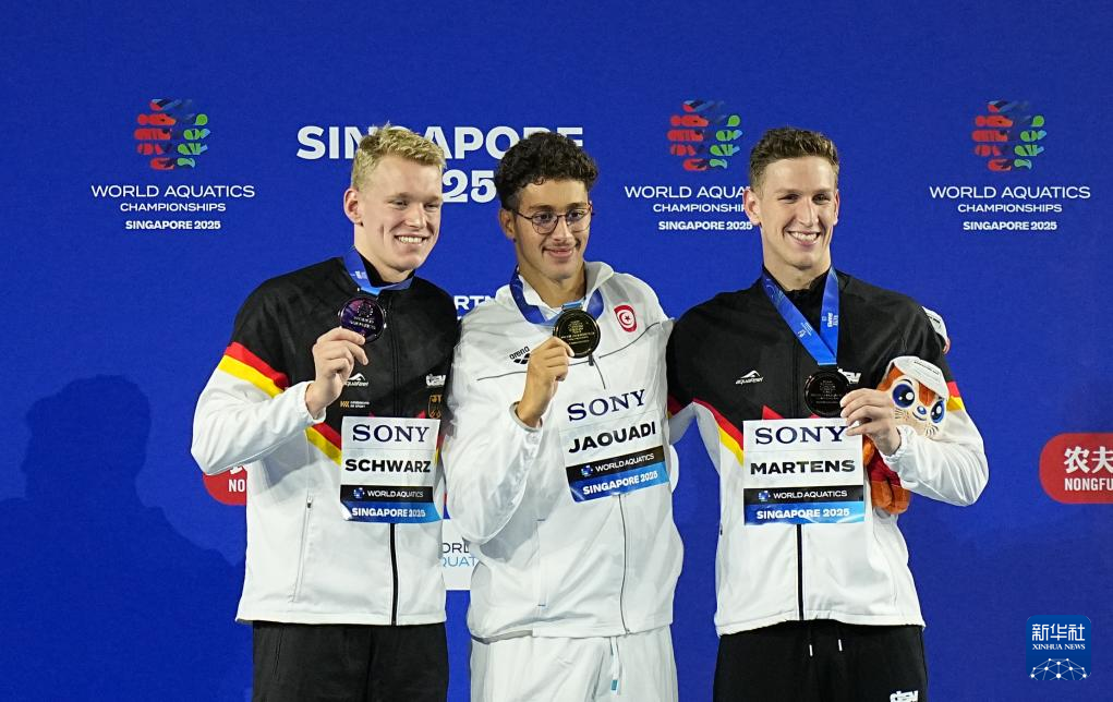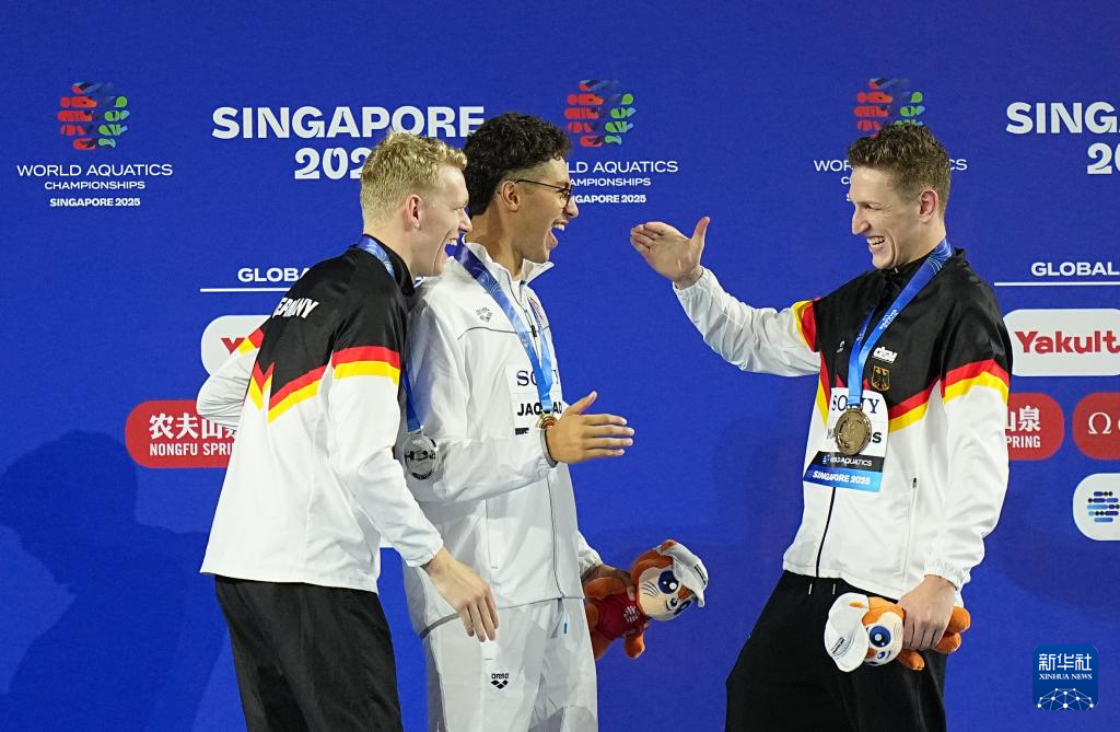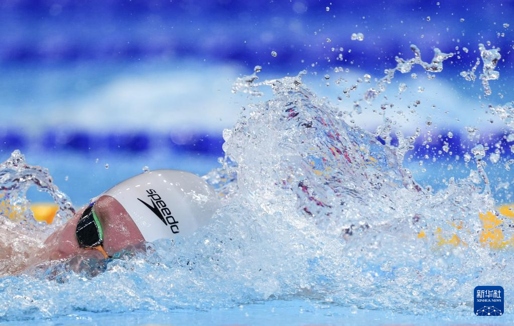 当日,2025年世界游泳锦标赛游泳男子800米自由泳决赛在新加坡举行。